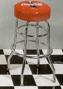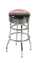 Coca Cola Logo Bar StoolsConstructed of chrome plated tubular metal. 30" tall w/padded swivel seat. Made in USA. Weighs 19 pounds. This is a restaurant grade quality.