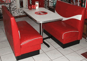 Coca Cola Diner Booth SetConsists of 2 Coca-Cola Wave logo booth benches and diner style table.Each bench measures 44" in length, 23" wide and stands 36" high and is manufactured from heavy duty vinyl. Coca-Cola diner table with bottle logo measures 42" x 24", stands 29" high, commercial grade, MADE IN THE USA! Minor Assembly.