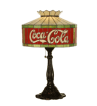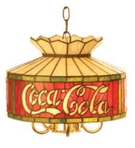 This beautiful retro Coke lamp has hundreds of individual pieces of stained glass soldered together with copper foil in the traditional Tiffany style with elegant detail.