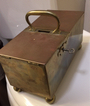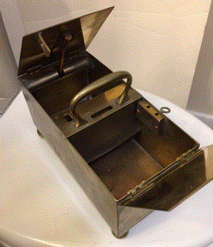 The vendor had a handle so it could be passed around. The vendor got the name Honor Box because patron's were "honor-bound" to close the lid and thereby relatch it as he pased it on to the next patrol.